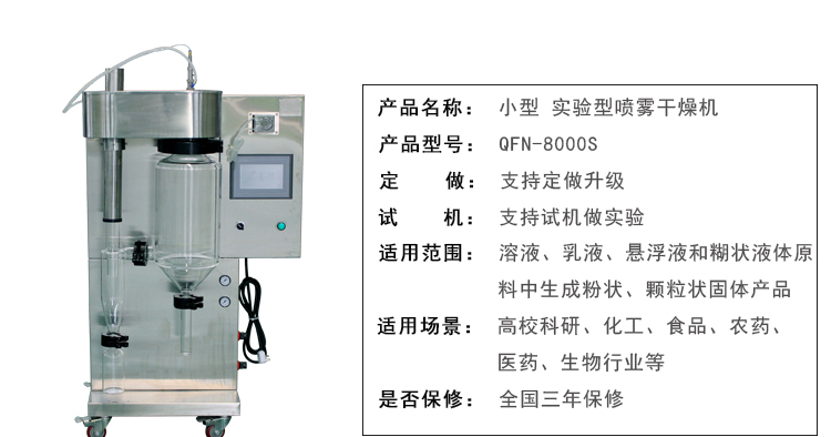 科學技術發展和生活水平的提高對噴霧干燥產品的物理性質提出了越來越高的要求。例如,有的要求堆密度特別大或特別小,一些有復水性的粉體如食品、中藥沖劑等則往往要求速溶性。一般說來,改變霧化的分散度以及適當改變操作條件以控制干燥速率,可以制得具有不同堆密度的產品,但變化的幅度是有限的。在改善物性方面值得一提的是泡沫噴霧干燥,即將進料液體先泡沫化后再行噴霧干燥。該方法最初是為提高熱效率而提出的,后來用以調整產品的物性。現已證明,泡沫噴霧干燥制得的奶粉等產品粒徑大、多孔、多凹陷、表面粗糙,具有良好的速溶性