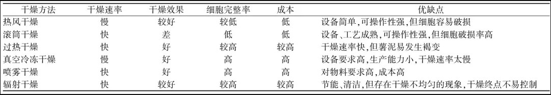 干燥是馬鈴薯全粉加工的重要工序。常見的干燥方法有熱風干燥、滾筒干燥、過熱干燥、真空冷凍干燥、噴霧干燥、微波干燥、紅外輻射干燥等。