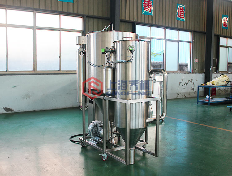 壓力噴霧干燥機(jī)是一種可以同時完成干燥和造粒的裝置。按工藝要求可以調(diào)節(jié)料液泵的壓力,流量,噴孔的大小,得到所需的按一定大小比例的球形顆粒。