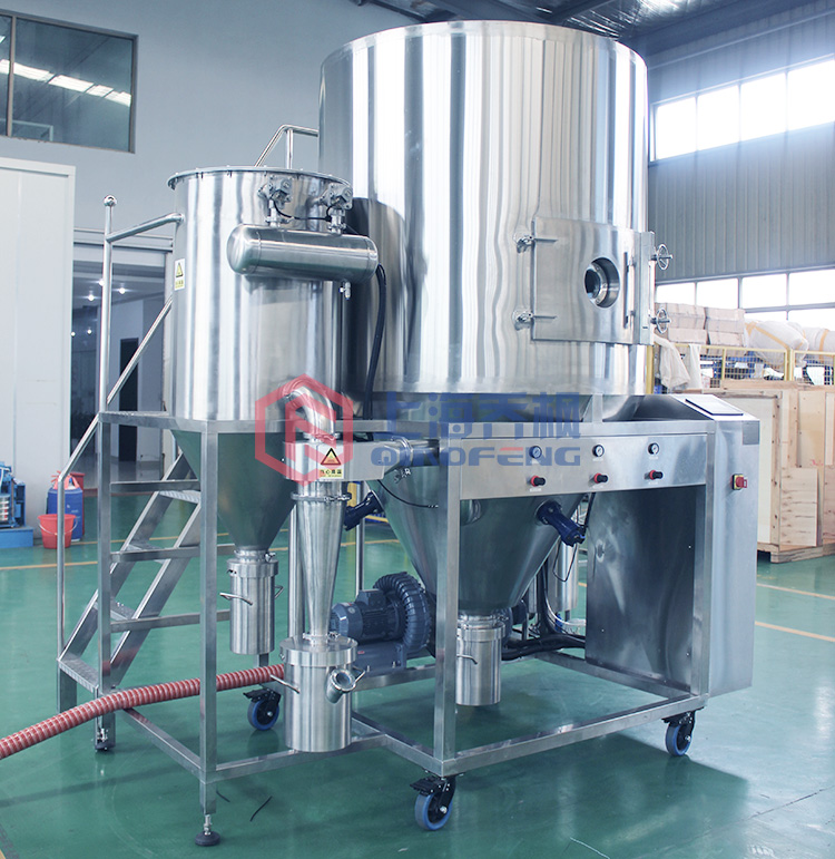 6.為了防止材料受到污染并延長(zhǎng)設(shè)備的使用壽命,與材料接觸的所有部件均由不銹鋼制成。 噴涂后,液體霧化成分散的顆粒,表面積大大增加。 在與熱空氣接觸后,干燥過程可以在很短的時(shí)間內(nèi)完成。