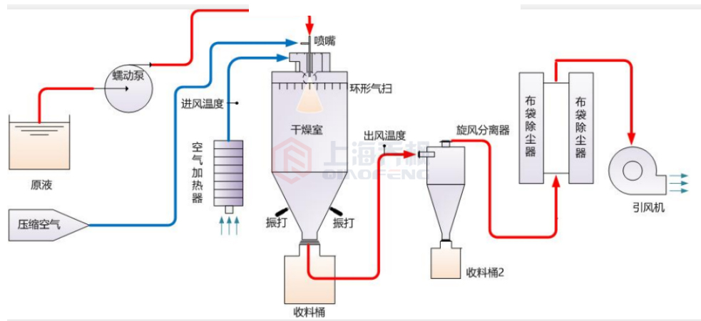 中藥浸膏噴霧干燥機(jī)裝置是離心式噴霧干燥技術(shù)在特定物料干燥中的應(yīng)用,也是利用高速離心式霧化器使物料分散成霧狀,與熱空氣充分接觸,完成瞬間干燥,形成粉狀成品的干燥裝置。