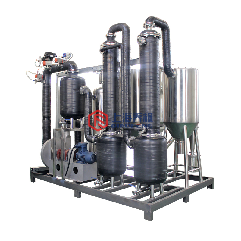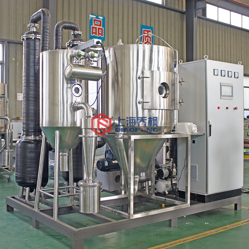 設備主要由:送料系統、加熱系統、霧化系統、噴霧干燥系統、惰性氣體循環系統、產品回收系統、冷凝系統組成。