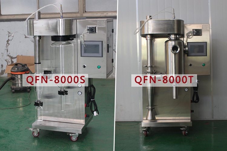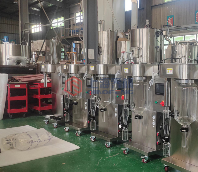 1.液態物料經過噴嘴霧化成微小液滴,霧化過程中,液滴的大小和均勻度直接影響干燥效果。